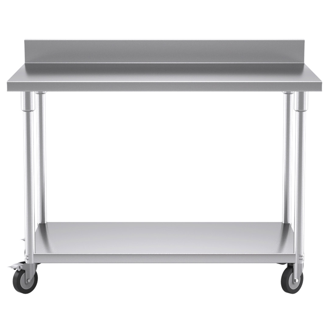 SOGA 120cm Commercial Catering Kitchen Stainless Steel Prep Work Bench Table with Backsplash and Caster Wheels WorkBenchSS8003120CM AU Depot Free Shipping SOGA 120cm Commercial Catering Kitchen Stainless Steel Prep Work Bench Table with Backsplash and Caster Wheels - AU DEPOT