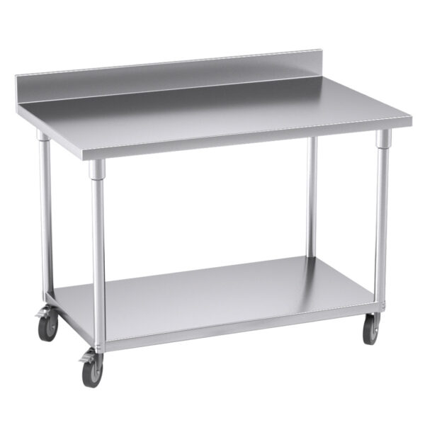 SOGA 120cm Commercial Catering Kitchen Stainless Steel Prep Work Bench Table with Backsplash and Caster Wheels – – WorkBenchSS8003120CM