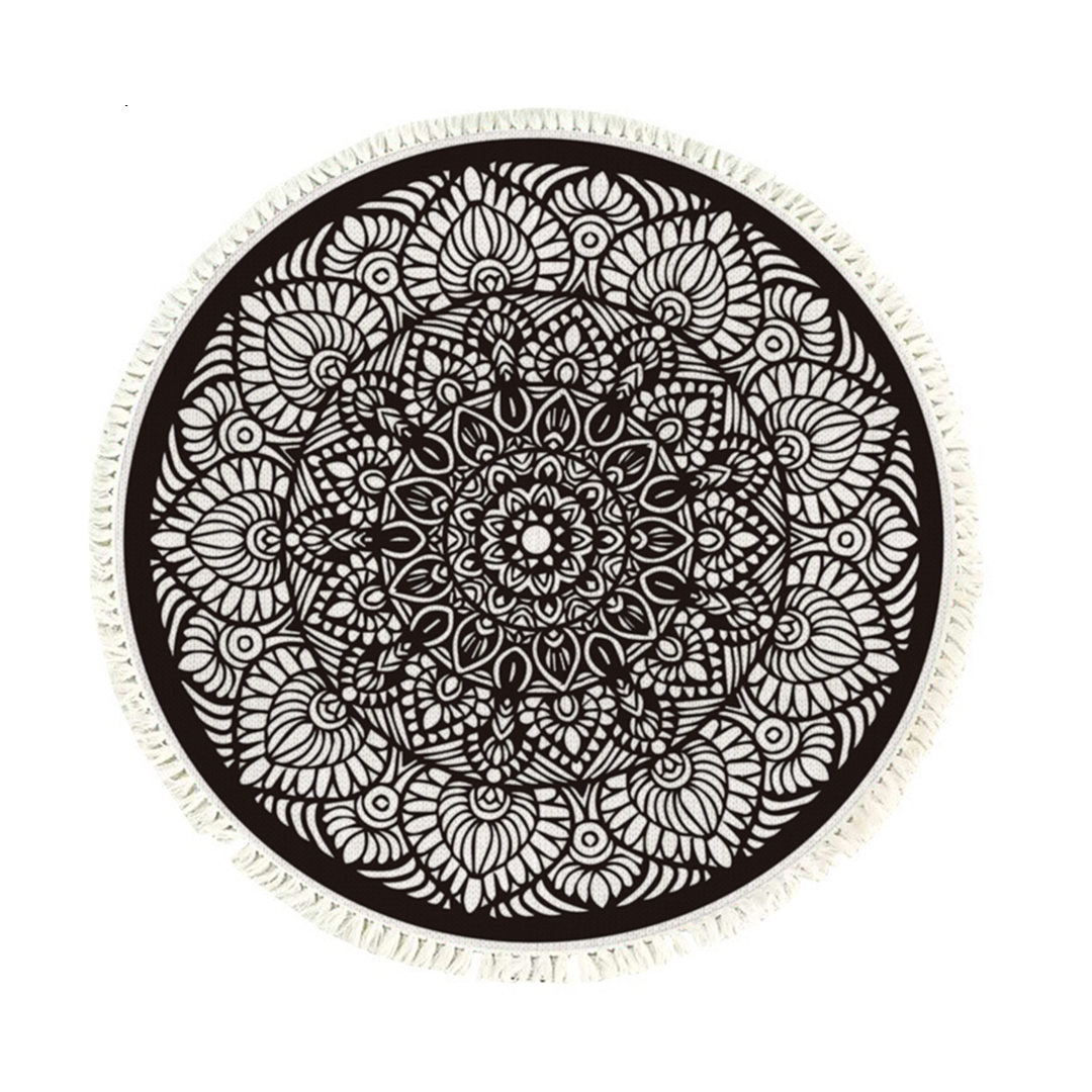 SOGA 120cm Mandala Modern Ethnic Tassel Print Anti-slip Doormat, Home Decor – Shaggy Rugs – CarpetXLS48