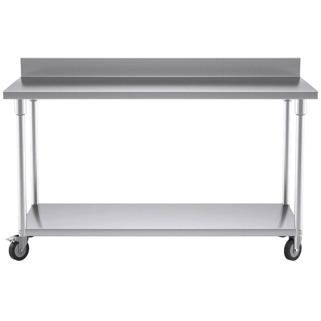 SOGA 150cm Commercial Catering Kitchen Stainless Steel Prep Work Bench Table with Backsplash and Caster Wheels