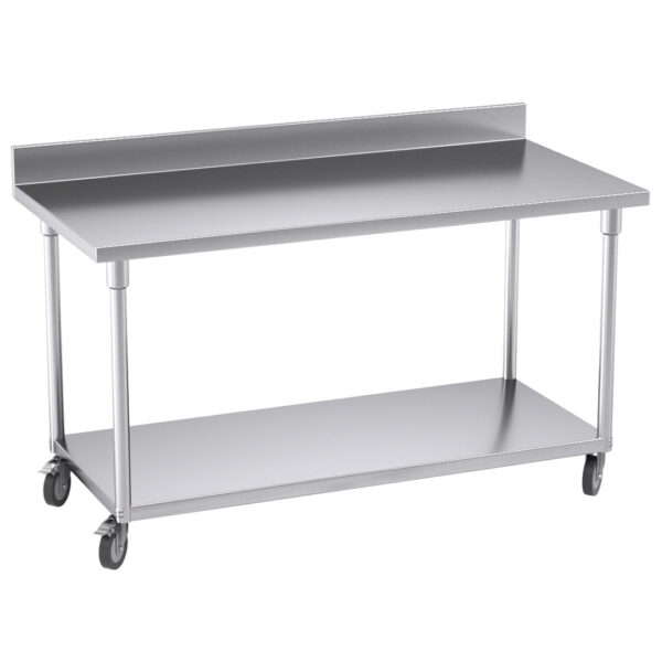 SOGA 150cm Commercial Catering Kitchen Stainless Steel Prep Work Bench Table with Backsplash and Caster Wheels – – WorkBenchSS8004150CM