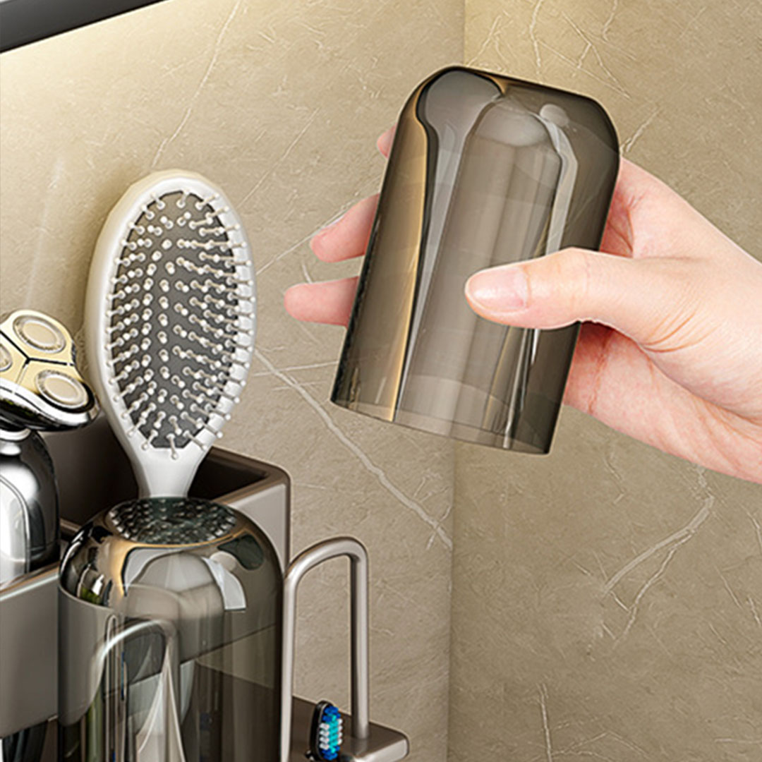 FLEXIBLE STORAGE: Simplify your organization with our rack’s adaptable shelving, capable of neatly accommodating toothbrushes, toothpaste, creams, lotions, and cosmetics.