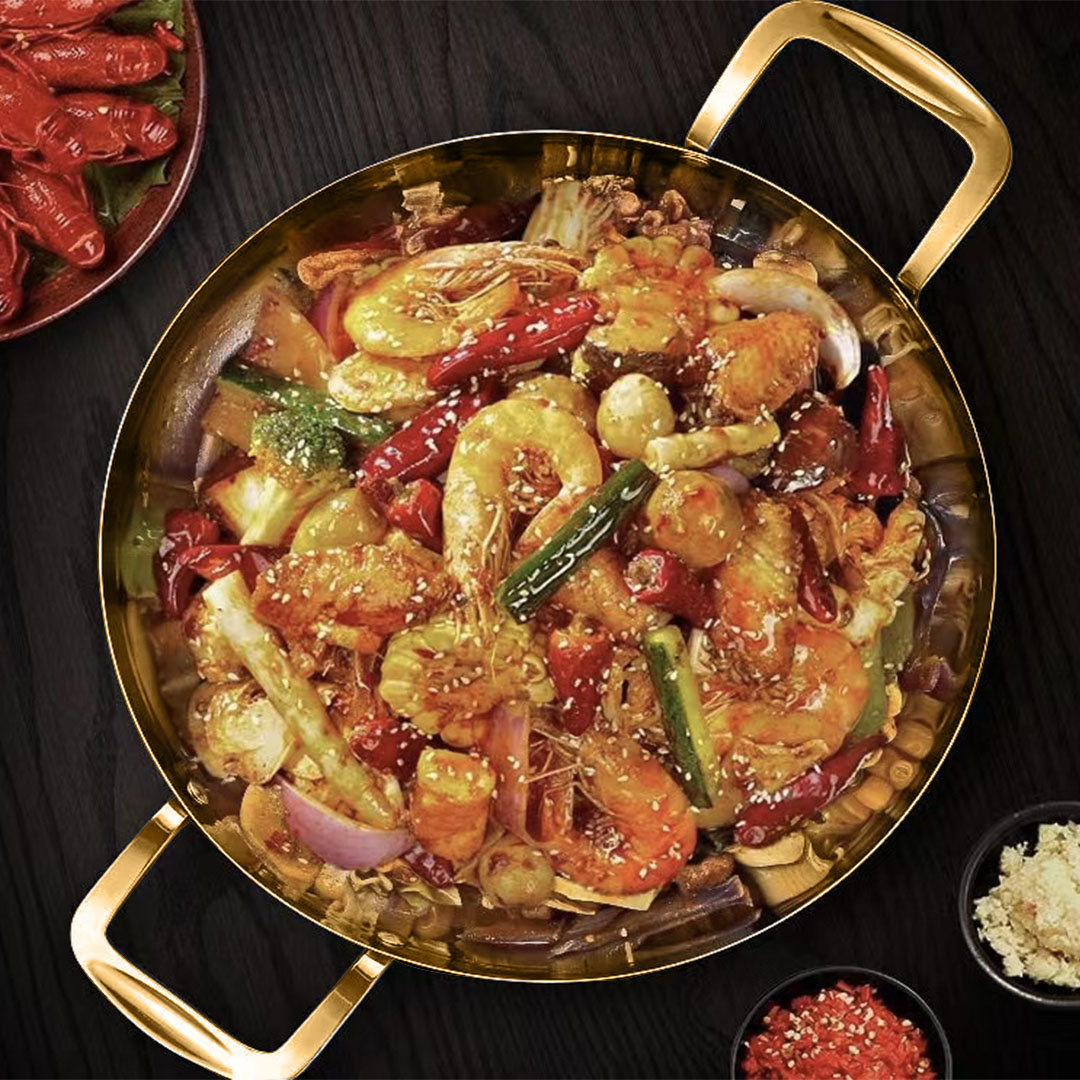 Soga 24cm Flat Base Seafood Dry Pot in Elegant Gold Color with Durable for Kitchen Essential – casserole dishes – VICSoupPot29