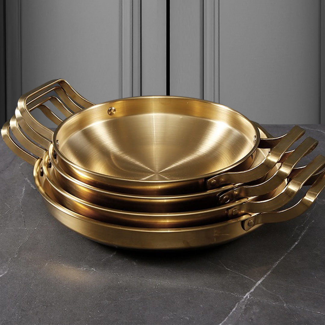 SOGA 26cm Dry Pot, Gold Plated 202 Material Stainless Steel and Kitchen Essential