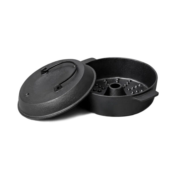 Rugged cast iron has great heat distribution and retention for slow and even cooking