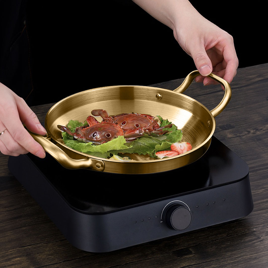 SOGA 28cm Dry Pot, Gold Plated 202 Material Stainless Steel and Kitchen Essential – casserole dishes – VICSoupPot17