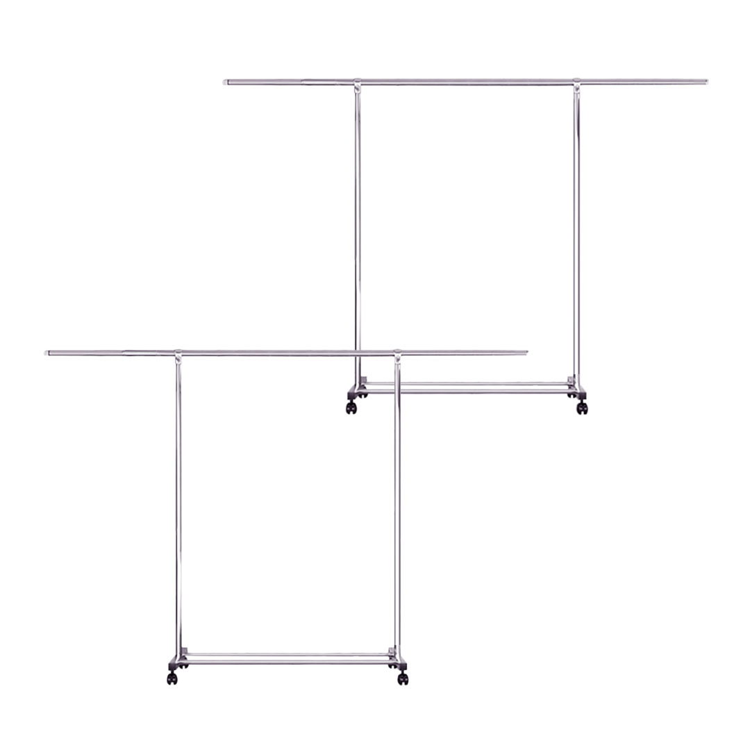 Stainless steel floor-standing clothes rack, single rod, 2.4 meters, extendable, with wheels and a bottom shelf