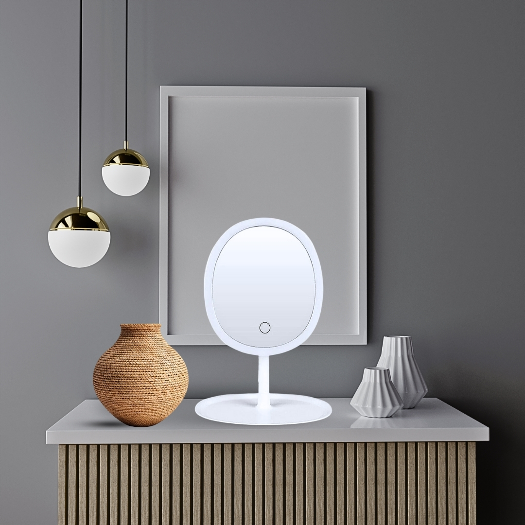 SOGA 2X 26cm White Oval Smart LED Makeup Bedroom Table Vanity Mirror Tricolor Adjustable Light – Bathroom Storage – MirrorE10X2