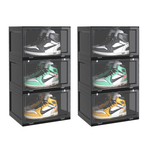 Official SOGA SOGA 2X 3 Tier Black Portable Shoe Organiser Sneaker Footwear Folding Plastic Bin Stackable Storage Box with Magnetic Door (SKU: ShoeA8003BLKX2). A high-quality available at AU Depot.