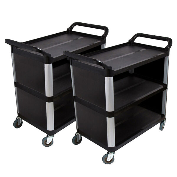 SOGA 2X 3 Tier Covered Food Trolley Food Waste Cart Storage Mechanic Kitchen Black – – FoodCart1515X2