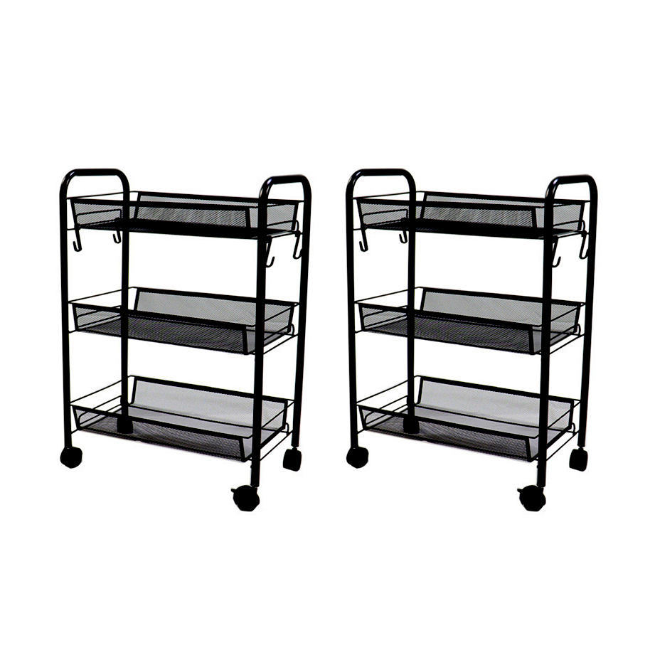 Official SOGA SOGA 2X 3 Tier Steel Black Bee Mesh Kitchen Cart Multi-Functional Shelves Portable Storage Organizer with Wheels (SKU: KitchenXY036X2). A high-quality available at AU Depot.
