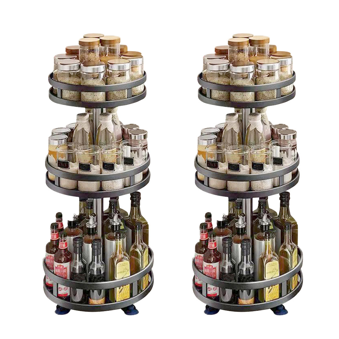 SOGA 2X 3 Tier Steel Black Round Rotating Multi-Function Kitchen Portable Storage Spice Seasoning Kitchen Countertop Organiser Shelf – – KitchenXY051X2