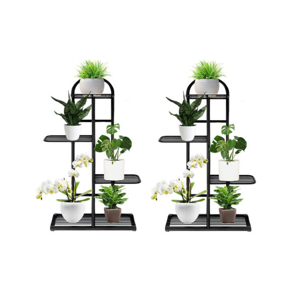 SOGA 2X 5 Tier 6 Pots Black Metal Plant Stand Flowerpot Display Shelf Rack Indoor Home Office Decor – – FPotH03X2