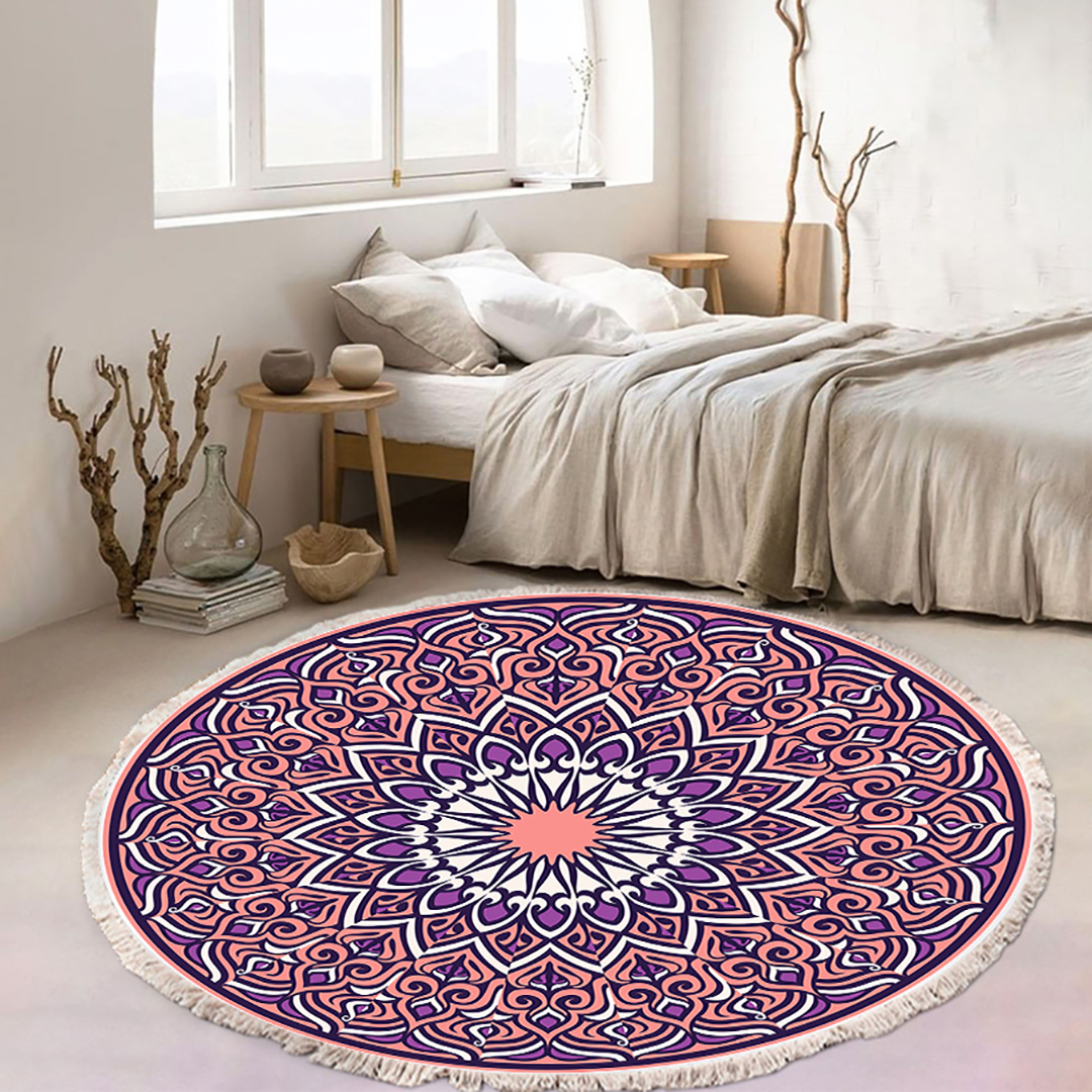 SOGA 2X 90cm Purple Mandala Round Carpet for Living Room Bedroom Anti-slip Doormat, Home Decor – Shaggy Rugs – CarpetRAG2X2