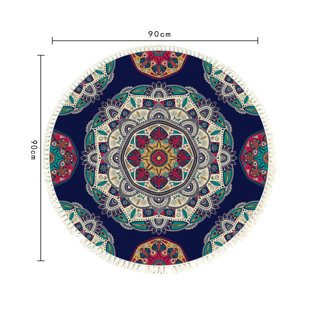 SOGA 2X 90cm Round Rug Bohemian Circle Area Rug with Bohemian Geometric Pattern, Anti-slip Doormat, Home Decor