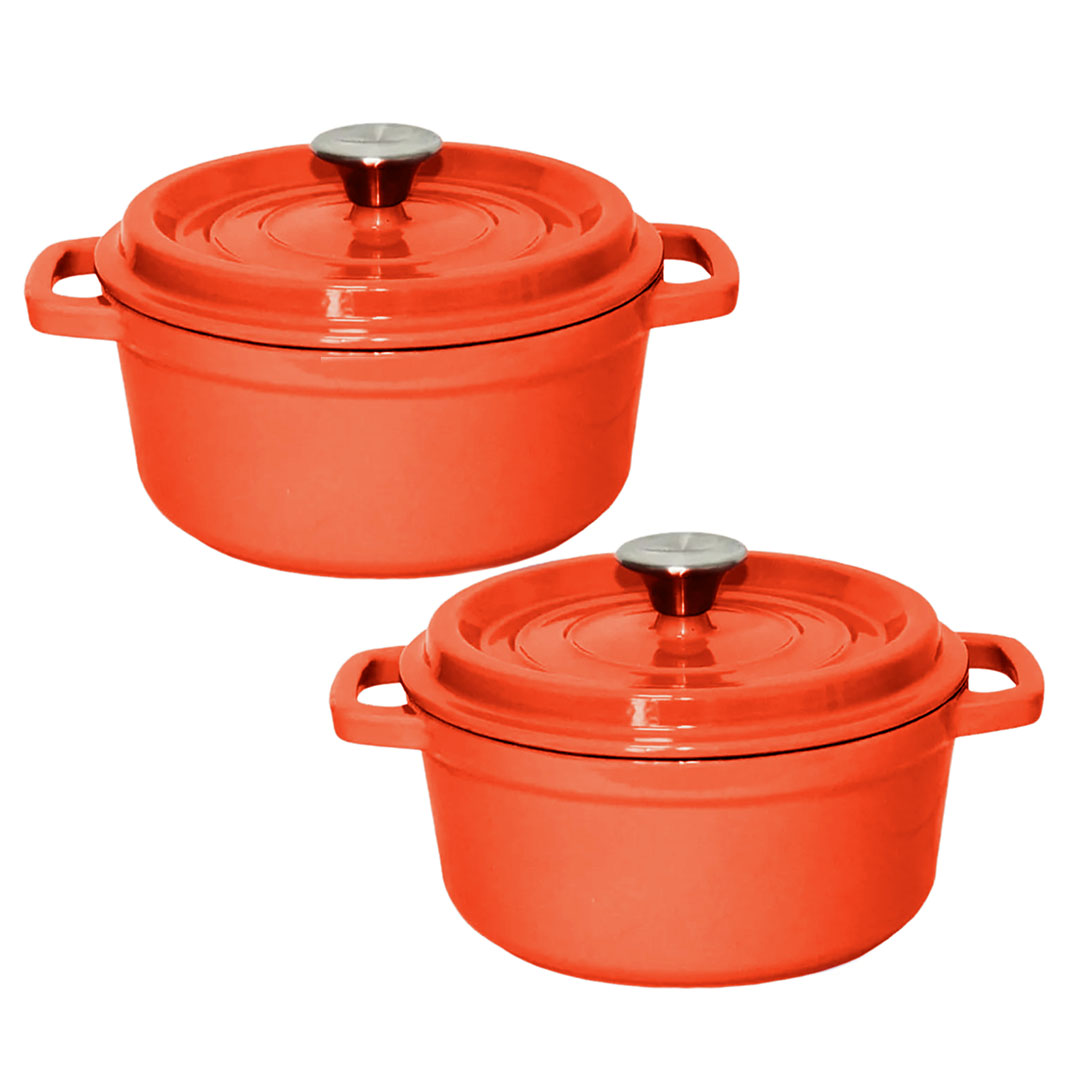 SOGA 2X Cast Iron 26cm Enamel Porcelain Stewpot Casserole Stew Cooking Pot With Lid Orange – Casserole Dishes – Stewpot26cmOrangeX2