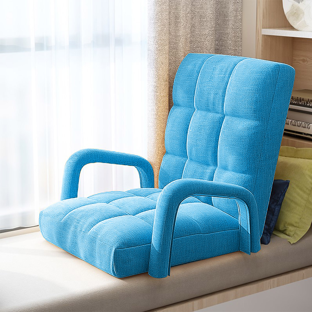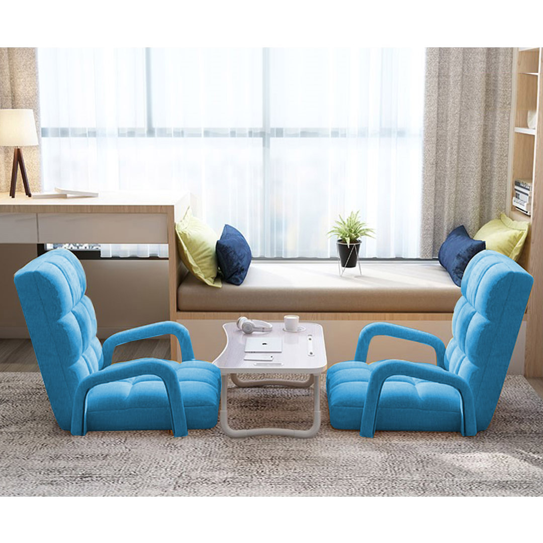 SOGA 2X Foldable Lounge Cushion Adjustable Floor Lazy Recliner Chair with Armrest Blue – – LoungeArmBlueX2
