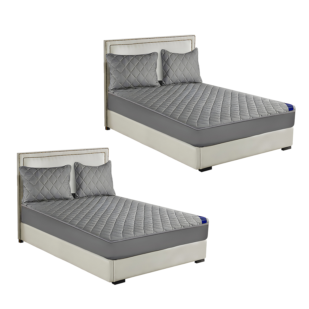 SOGA 2X Grey 153cm Wide Cross-Hatch Mattress Cover Thick Quilted Stretchable Bed Spread Sheet Protector with Pillow Covers – Mattress Protectors, Underlays & Toppers – BCover4006X2