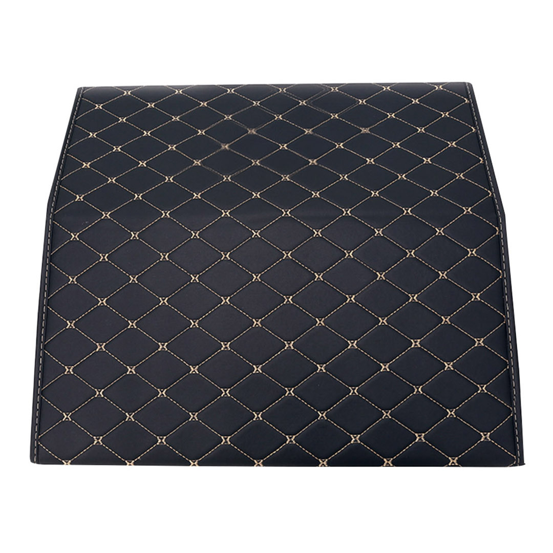 SOGA 2X Leather Car Boot Collapsible Foldable Trunk Cargo Organizer Portable Storage Box Black/Gold Stitch Medium