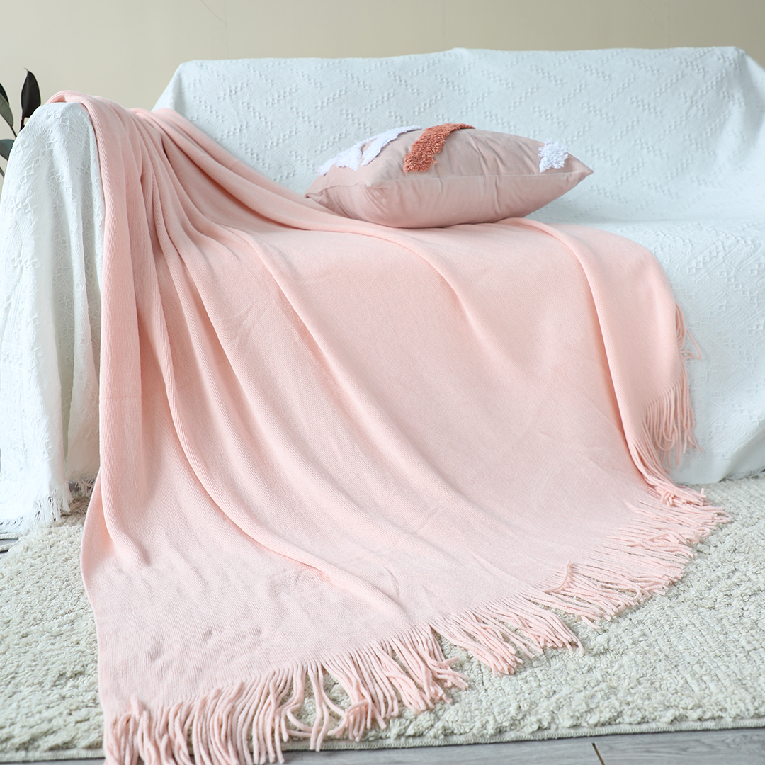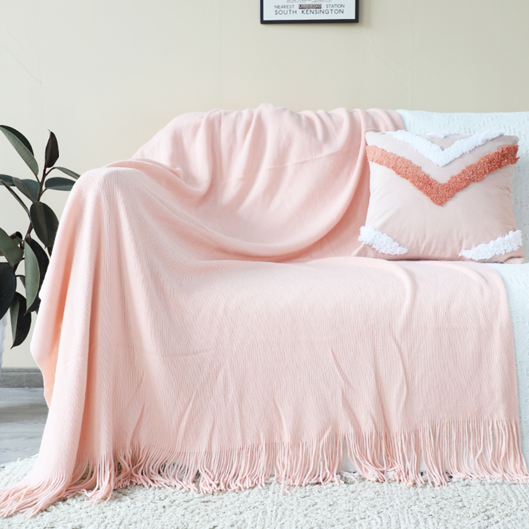SOGA 2X Pink Acrylic Knitted Throw Blanket Solid Fringed Warm Cozy Woven Cover Couch Bed Sofa Home Decor – Blankets – Blanket915X2
