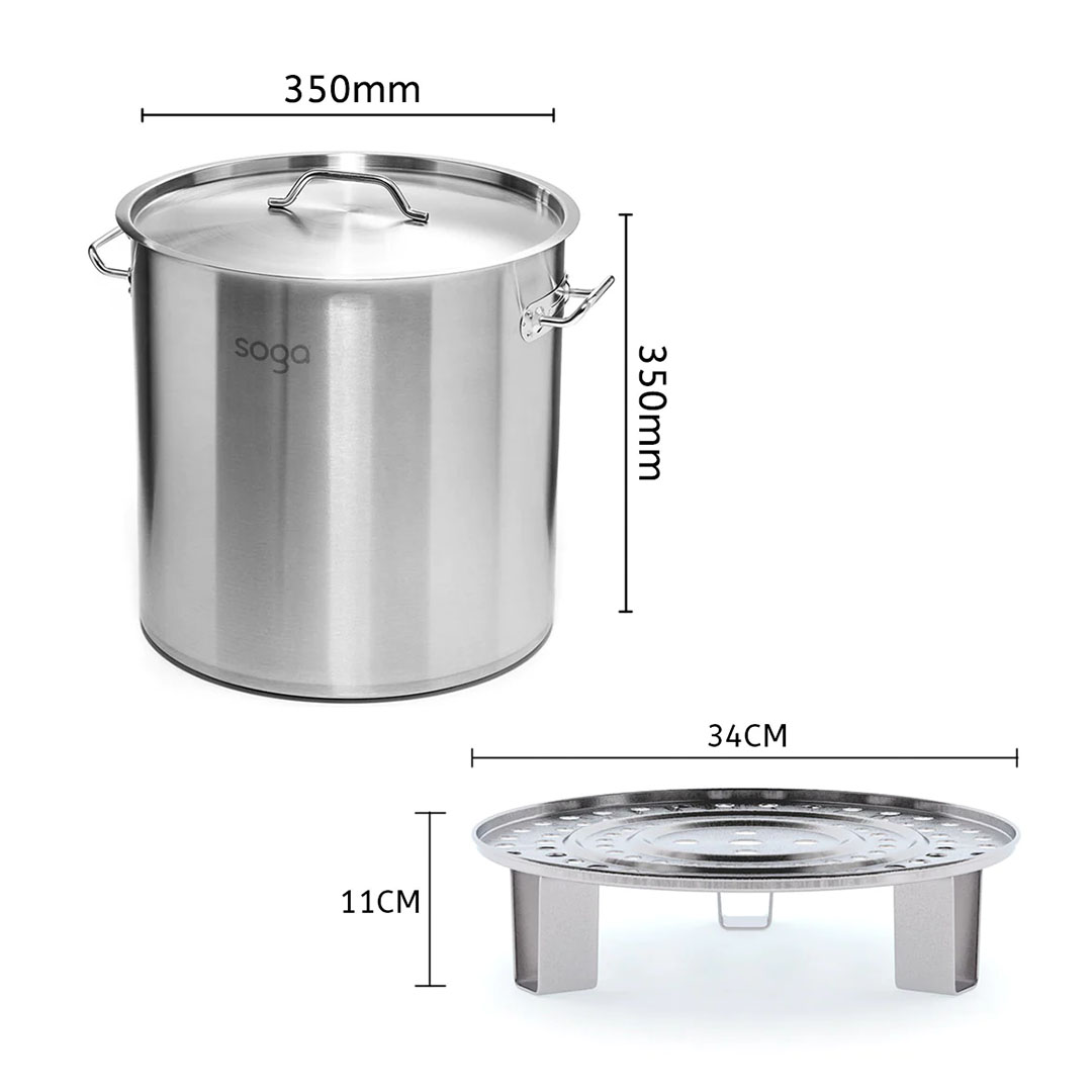 SOGA 33L Stainless Steel Stock Pot with One Steamer Rack Insert Stockpot Tray – – StockPot35CM-1XRack34CM