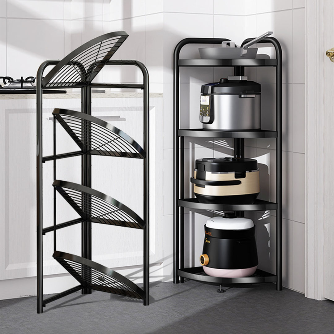 SOGA 4 Tier Steel Triangular Corner Stand Multi-Functional Shelves Portable Storage Organizer – – KitchenXY025