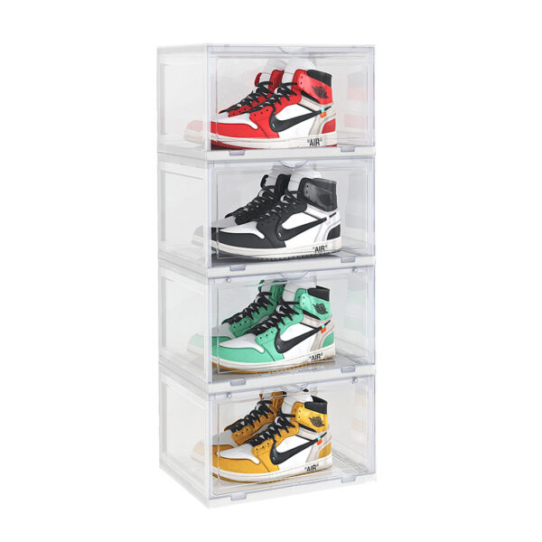 SOGA 4 Tier Transparent Portable Shoe Organiser Sneaker Footwear Folding Plastic Bin Stackable Storage Box with Magnetic Door – – ShoeA9004WHT