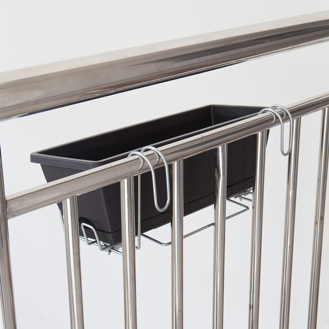 This planting pot has an attractive rectangular shape. It has a holder and drainage holes. It has enough space for multiple flowers or any planting options, making the trough look colorful and beautiful.