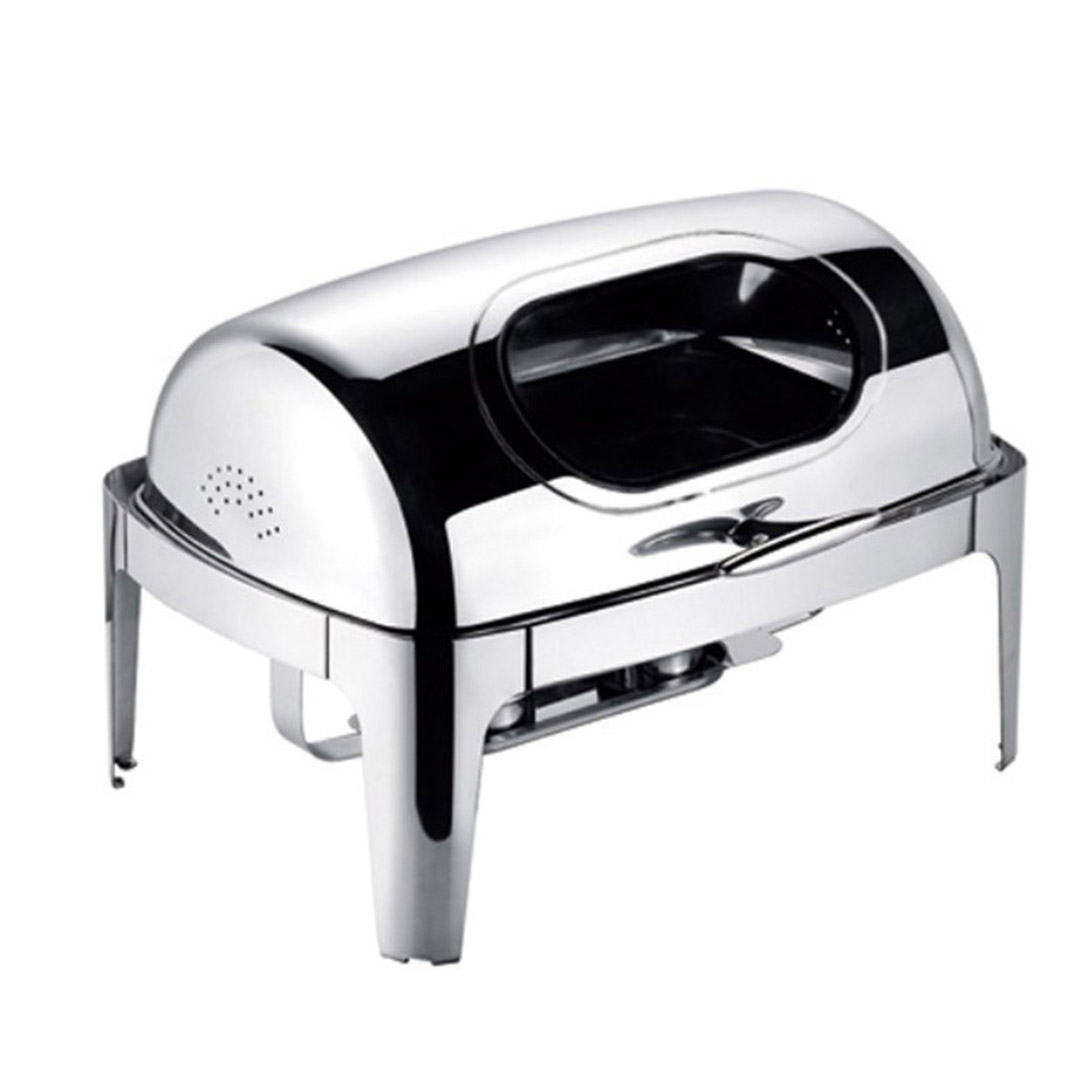 SOGA roll-top soup tureen chafing dish with a show window lid is made of durable stainless steel construction ensuring this chafer is built to withstand everyday use while providing a timeless appearance that blends in with your classic decor.