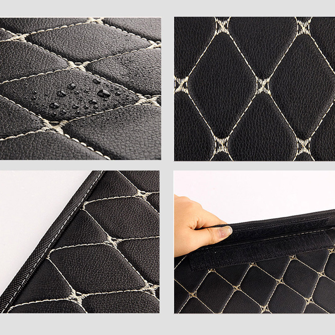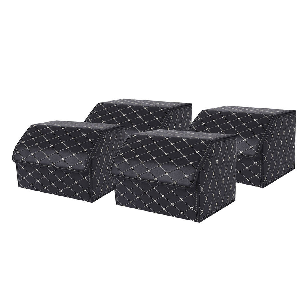 SOGA 4X Leather Car Boot Collapsible Foldable Trunk Cargo Organizer Portable Storage Box Black/Gold Stitch Medium – Interior Accessories – StorageBLKGLDMedX4