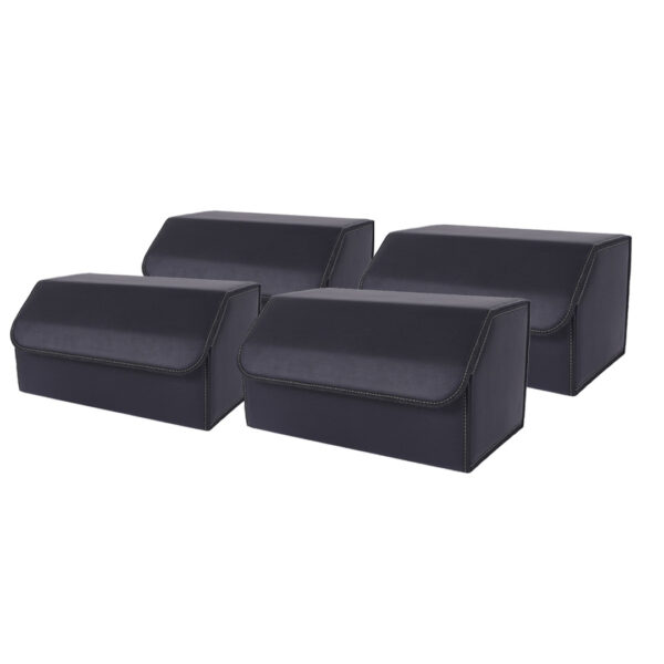 SOGA 4X Leather Car Boot Collapsible Foldable Trunk Cargo Organizer Portable Storage Box Black Large – Interior Accessories – StorageBLKLgeX4