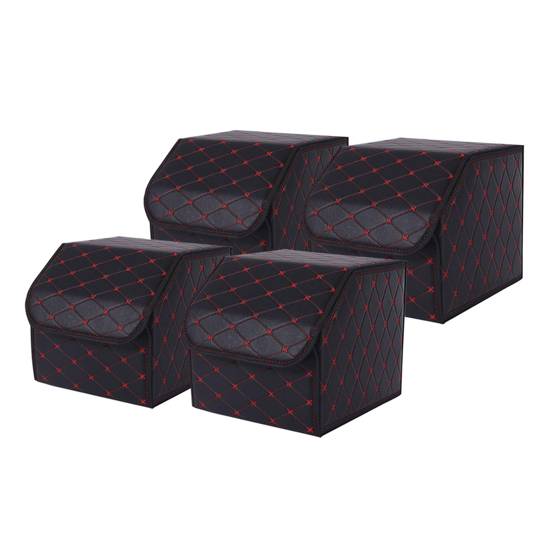Official SOGA SOGA 4X Leather Car Boot Collapsible Foldable Trunk Cargo Organizer Portable Storage Box Black/Red Stitch Small (SKU: StorageBLKREDSmlX4). A high-quality Interior Accessories available at AU Depot.