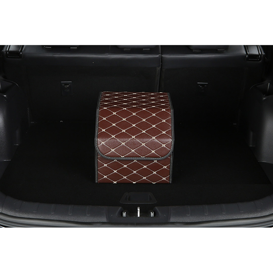SOGA 4X Leather Car Boot Collapsible Foldable Trunk Cargo Organizer Portable Storage Box Coffee/Gold Stitch Small – Interior Accessories – StorageCOFGLDSmlX4