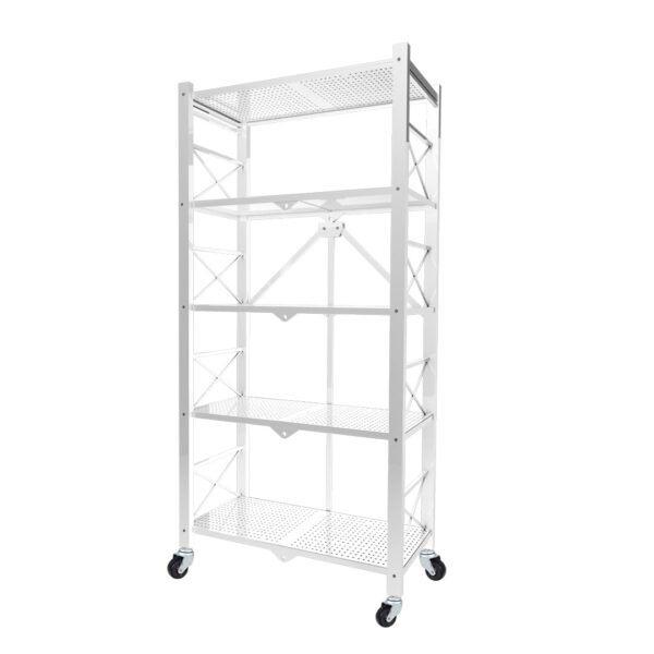 SOGA 5 Tier Steel White Foldable Display Stand Multi-Functional Shelves Portable Storage Organizer with Wheels – – KitchenXY030