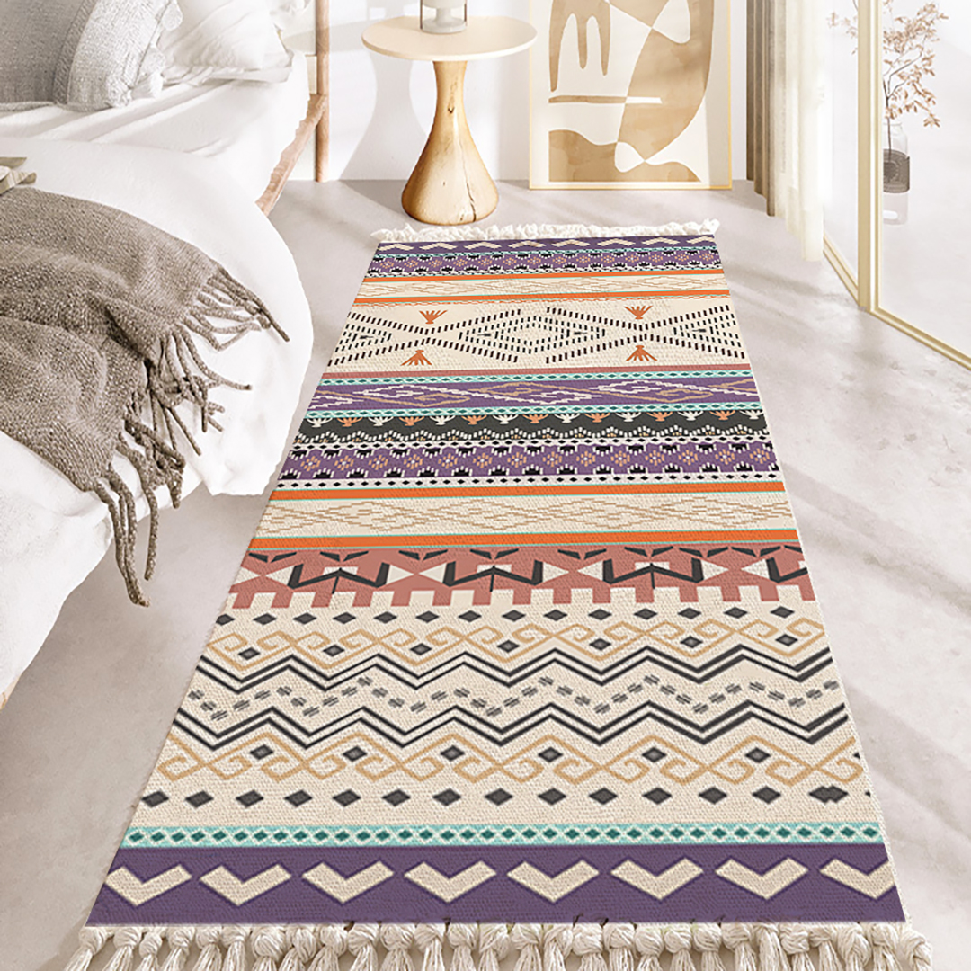 Infuse your space with a vibrant pop of color by displaying this rug. It features a vivid striped motif with coordinating tassels to complete the look. Its versatile size makes it perfect for use in your entryway, beside your bed, or in your getting-ready space.