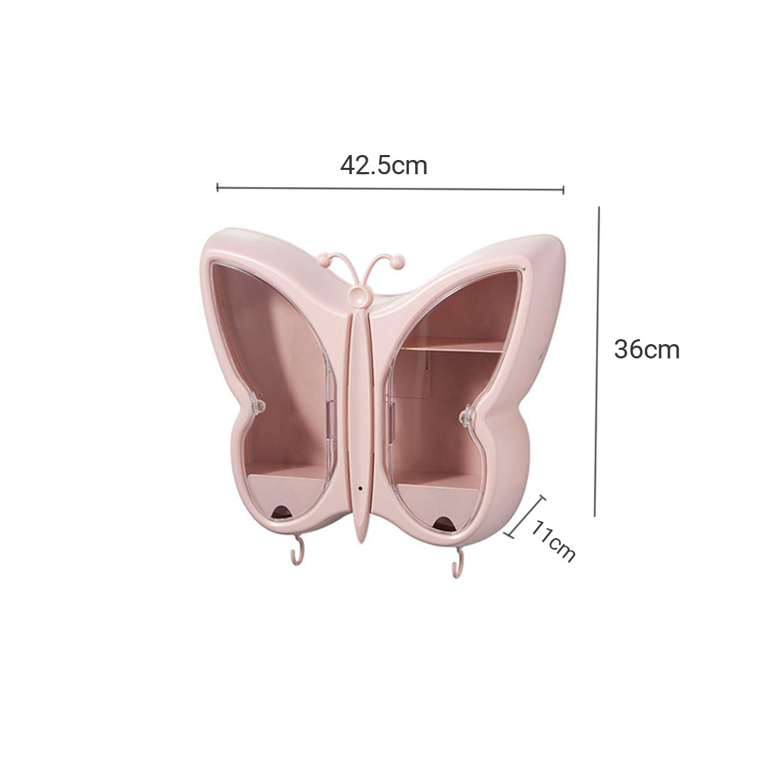 SOGA Pink Butterfly Shape Wall-Mounted Makeup Organiser Dustproof Waterproof Bathroom Storage Box Home Decor – Bathroom Storage – BathG317