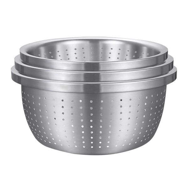 SOGA Stainless Steel Nesting Basin Colander Perforated Kitchen Sink Washing Bowl Metal Basket Strainer Set of 3 – Mixing Bowls – Bowl609